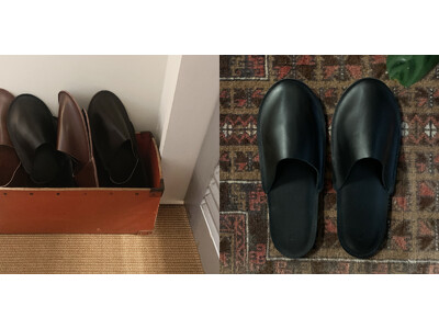 リーガルコーポレーションとD&DEPARTMENT協働開発。革特有のキズやシワを生かした、革の個性を丸ごと楽しむスリッパを発表。