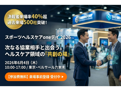【来場事前登録開始】決裁者来場率40%超!単なる展示会ではなく新規事業が生まれる共創の場へ。ヘルスケア×スポーツの完全BtoBイベント「スポーツヘルスケアoneデイ2026」6月4日(木)六本木で開催