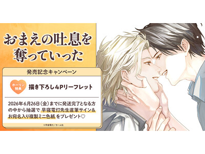 株式会社TORICO(本社:東京都千代田区、代表取締役社長:安藤拓郎)が運営するホーリンラブブックスにて、早寝電灯先生『おまえの吐息を奪っていった』発売記念キャンペーンを開催いたします。 ホー...