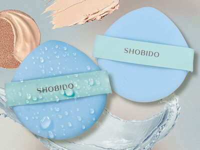 パフなのに水で膨らむ!しずく型で細かい部分もしっかりカバー。粧美堂より、光沢肌メイクを演出する※「Wet&Dryパフ」が新登場