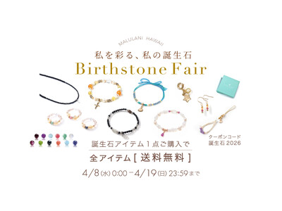 ハワイ発祥の天然石アクセサリーブランド「マルラニハワイ」は、期間限定にて「誕生石ジュエリー送料無料キャンペーン」を公式オンラインショップにて開催いたします。 身につけることで幸運を招き、災いを...