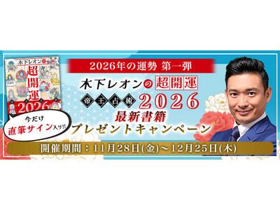 株式会社レンサ(本社:東京都渋谷区、代表取締役:武井哲也)は、2025年11月28日(金)より、運営する公式占いサイト『木下レオンの占い』にて、「2026年の運勢第一弾 直筆サイン入り最新書籍...