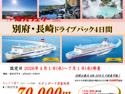 【関西発・阪九フェリー利用】マイカーで春の別府・佐世保へ「別府・長崎ドライブパック」販売開始!