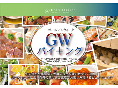 【ホテルテラスザスクエア日立】宿泊付きプランが今からでも間に合う!今年のGWは"海の幸と山の恵み"を味わう旅へ。日立駅徒歩2分のホテルにてディナーバイキング開催!