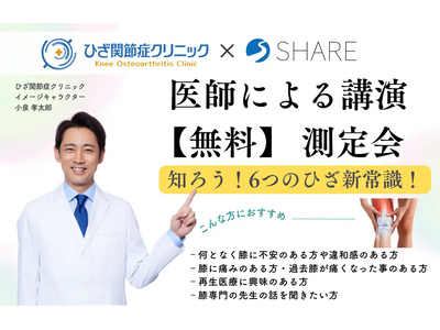 ひざ関節専門医による講演と、骨密度体組成ロコモチェックの無料測定会 医療法人社団活寿会ならびに株式会社SHARE(以下、主催者名)は、札幌市にて、医療機関とフィットネスジムが連携した無料イベン...