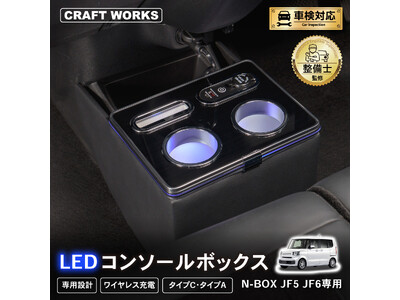 N-BOX JF5/JF6専用 LEDコンソールボックス予約開始。車種専用設計で、まるで純正のようなフィット感。抜群の収納力で、快適な車内空間を提供。スッキリ充電体験でデザイン性・使いやすさを実現