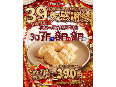 2026年3月7日(土)~9日(月)の3日間限定、全国の甘味処鎌倉で開催 日頃のご愛顧に心より感謝を込めて。 全国の和スイーツ専門店「甘味処鎌倉」は、2026年3月7日(土)~3月9日(月)の...