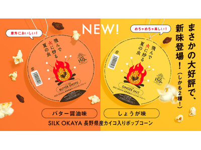 【完売続出】信州産「お蚕様」入りポップコーンに待望の新味!『飛んで火に炒る夏の虫』から「バター醤油味」「生姜味」が4月より新登場