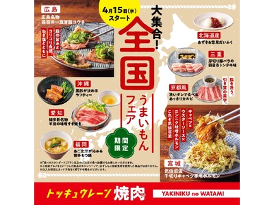 【焼肉の和民】1度のご来店で全国制覇!?日本中の"うまい"が大集合!!「全国うまいもんフェア」開催!!