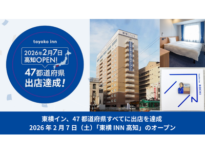 株式会社東横インは2026年2月7日(土)、「東横INN高知」のオープンをもって47都道府県すべてへの出店を達成いたしました。 東横インは「全国ネットワークの基地ホテル」をブランドコンセプトに...