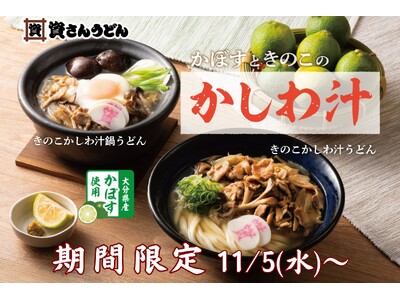【今年も復活!かしわ汁うどん】11/5(水)~「資さんうどん」に「きのこかしわ汁うどん」が期間限定で登場!秋の味覚「きのこ」や生絞り「かぼす」で味変も楽しい!進化系「かしわ汁うどん」をお楽しみ下さい。