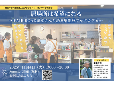オンライン報告会『居場所は希望になる ー FAIR ROAD栗本さんと語る奥能登ブックカフェ 』<2025年11月4日(火)19:00~20:00>