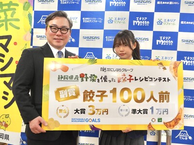 「第3回高校生 静岡県産野菜を使った餃子レシピコンテスト」学校で製作したドライトマトを使用したレシピで、県立田方農業高等学校の八賀さんが大賞を受賞