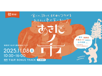 ~秋田市に行ってみたくなる!秋田市の暮らしをリアルに体感&相談できる一日~ 秋田市は、2025年11月8日(土)に、東京下北沢のBONUS TRACKにて「秋田市つながり実感移住フェア...