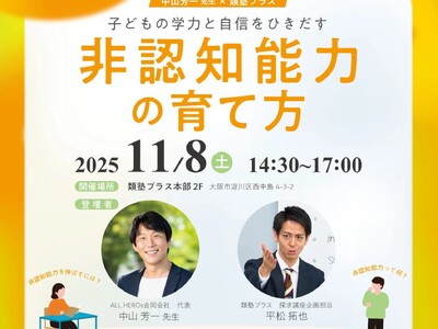 【中山芳一先生×類塾プラス】子どもの学力と自信をひきだす非認知能力の育て方共同セミナーを11月8日(土)に開催