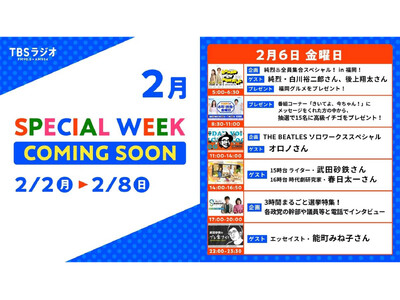 TBSラジオは2月2日(月)~2月8日(日)にかけて、各番組で特別企画をお届けするスペシャルウィークを開催します。ぜひリアルタイムでお楽しみください! radikoライブURL: TBSラジオ...