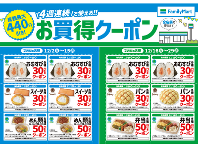 この冬はファミリーマートがおトク!!4週連続で使える!!「お買得クーポン」を店頭にて配布~1度の会計で複数枚使用できるように!~