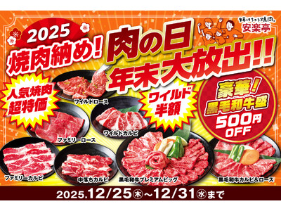 焼き肉レストラン安楽亭(本社:埼玉県さいたま市)は、日頃のご愛顧への感謝を込めた「肉の日 年末大放出!!」を、2025年12月25日(木)から12月31日(水)までの期間限定で開催いたします。...