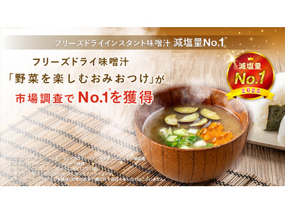 【フリーズドライタイプのインスタント味噌汁 減塩量No.1※】フリーズドライ味噌汁「野菜を楽しむおみおつけ」が市場調査でNo.1を獲得