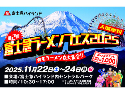 今年も開催!全国の有名ラーメン店が富士急ハイランドに集合! 入園無料の富士急ハイランド(所在地:山梨県富士吉田市)では、全国の有名ラーメン店が一挙に集結するイベント、「第2回 富士急ラーメンフ...