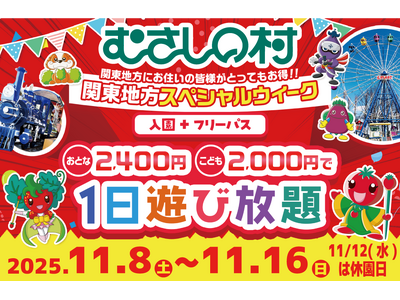 【遊園地むさしの村】関東地方にお住いの皆様がとってもお得!!「関東地方スペシャルウィーク」11月8日(土)から開催!
