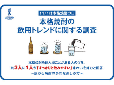霧島酒造、本格焼酎の飲用トレンド調査を実施。全世代が「すっきりと飲みやすい」味わいを最も重視、20代は「フルーティーな香り」への期待、40代以下では食事に合わせて飲み方を変えるペアリング志向が判明
