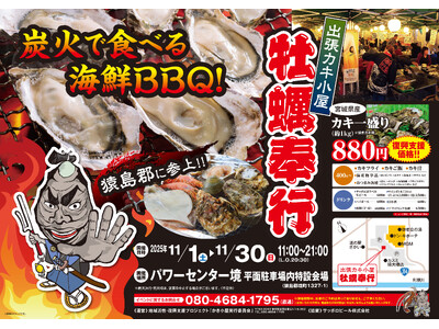 猿島郡 境町に「出張カキ小屋」参上! 11月1日~ パワーセンター境 駐車場特設会場で期間限定開催!《 宮城県産殻付き牡蠣が一盛り880円!! 》