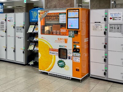 【福岡県福岡市】9月より天神駅中央改札口で350円生搾りオレンジジュース自販機IJOOZが稼働開始!