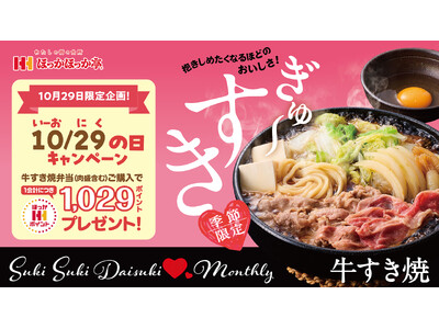 10月29日「いーおにくの日」と題して、「牛すき焼弁当」ご購入でほっかほっか亭公式アプリ「ほっかポイント」を1,029ポイントプレゼント!