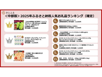【さとふるニュースレター】<中部版>2025年ふるさと納税人気お礼品ランキング(確定)