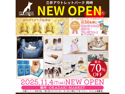 11月4日~9日 オープン記念キャンペーン開催!先着プレゼント&特別OPEN SALE実施! スリーアローズ直営店「PET THREE」 三井アウトレットパーク 岡崎に新規オープン! ...
