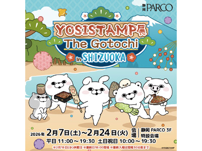 富士山を背景に、うさぎさん、くまさん100%シリーズほかヨッシースタンプキャラクター大集合! 静岡パルコ(本部:東京都渋谷区)は「ヨッシースタンプ展 The Gotochi」を2026年2月7...