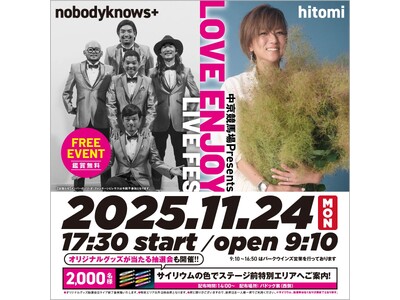nobodyknowsとhitomiが登場!!!! LOVE ENJOY LIVE FES を開催! 11月24日(休月)の中京競馬場にて、入場無料の音楽フェス「LOVE ENJOY LIVE...