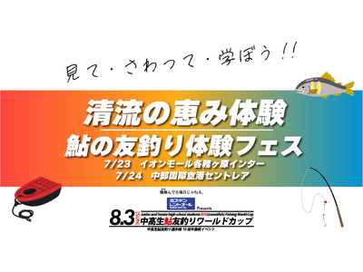 イオンモール各務原インター(7月23日)中部国際空港セントレア(7月24日)にて連日開催。当日はSNS連動型プレゼント抽選会も。 郡上鮎の会では、2025年8月3日に開催される「中高生鮎友釣り...