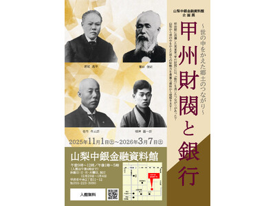 株式会社山梨中央銀行(頭取 古屋 賀章)は、より多くの金融リテラシー向上の機会を提供するため、山梨中銀金融資料館において、企画展「甲州財閥と銀行~世の中をかえた郷土のつながり~」を開催します。...