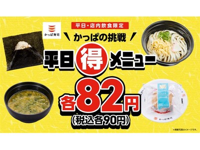 毎日通いたくなる!かっぱの挑戦 平日(得)メニューに、定番人気の「シューアイス」が初登場!「おにぎり・かけうどん・味噌汁・シューアイス」の計4品が税込各90円!