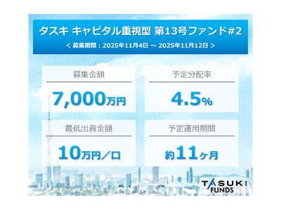 不動産投資型クラウドファンディング「TASUKI FUNDS」タスキ キャピタル重視型 第13号ファンド#2の投資募集のお知らせ