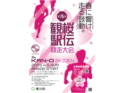 春に響け、走る鼓動。 第76回観桜駅伝競走大会開催及び参加者募集!新たな試み『SOMEまっち』で、より多様な仲間と共に参加の機会を広げます。 観桜駅伝ポスター 寒川町の春の風物詩である「観桜駅...