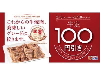 松屋60周年記念第2弾は"牛焼肉"が主役。 人気メニューが1週間「100円引き」! 牛焼肉定食、牛焼肉ピリ辛炒め、新焼き牛めしまで、多彩なラインナップをお得に堪能 2月3日(火)10時~ 開始...