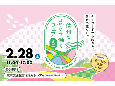 長野県の移住イベント「信州で暮らす働くフェア・ミニ~キーワードから始まる信州の暮らし~」を2月28日、有楽町の東京交通会館にて開催します。
