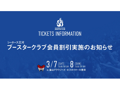 いつもシーホース三河にご青援ありがとうございます。 この度、2026年3月7日(土)8日(日)に開催される富山グラウジーズ戦において、ブースタークラブ会員の皆様がよりお求めやすく、より熱くご青...
