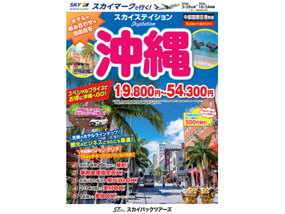 【新商品/中部国際空港発着】スカイマークで行く!「スカイステイション 沖縄」を販売開始!19,800円からのスペシャルプライス♪事前座席指定ok!お預け手荷物も20kgまで個数制限なく無料!