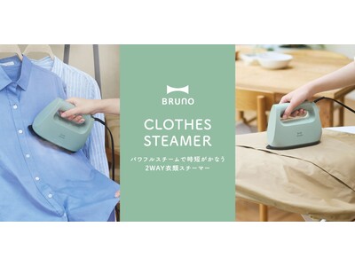 立ち上がり約15秒!当社史上最高クラス※1の最大23g/分※2のパワフルスチーム。BRUNOから2WAYで使える「衣類スチーマー」が新登場!
