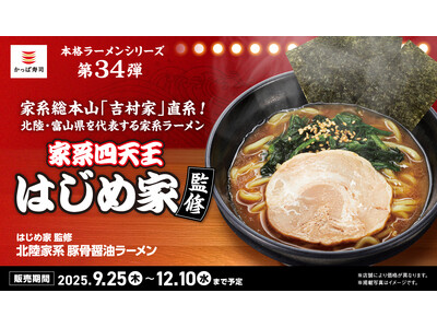 家系総本山「吉村家」直系の名店「はじめ家」とかっぱ寿司がコラボ!「本格ラーメンシリーズ」第34弾『はじめ家監修 北陸家系 豚骨醤油ラーメン』など全3商品が新登場!