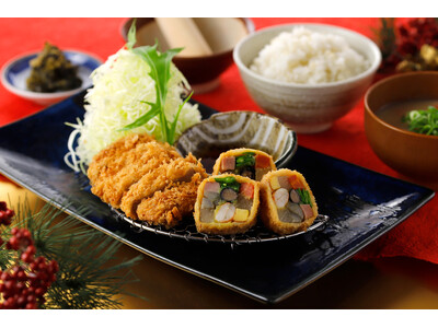 京都のとんかつ専門店『名代とんかつ かつくら』は、2026年1月1日(木)から1月4日(日)まで、おせち料理をイメージした宝巻きかつと国産豚の特別メニュー『賀正膳』を販売します。 賀正膳(宝巻...