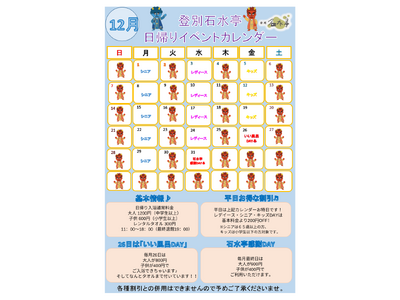 【北海道/登別温泉/石水亭】「心も体もリフレッシュ!12月日帰り入浴イベントカレンダー発表」