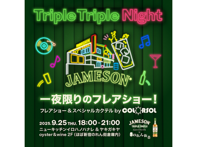 ジェムソン新商品「ジェムソン トリプル トリプル」2025年9月22日(月)全国発売!~記念イベント『Triple Triple Night』を9月25日(木)「ほぼ新宿のれん街」で開催~