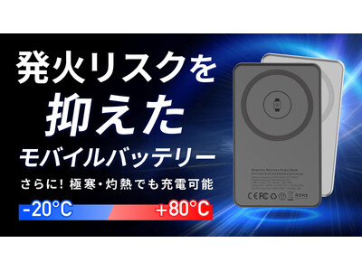 画期的新技術!発火リスクが低い準固体電池のマグネット式ワイヤレスモバイルバッテリーをMakuakeで先行予約開始