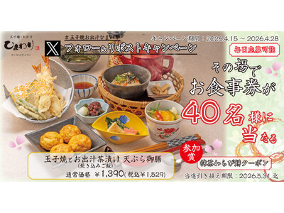 【玉子焼・お出汁ひまわり】4/15(水) ~デジタルお食事券が当たるXキャンペーン開催!