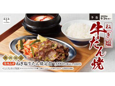 旨味あふれる「ねぎ塩牛たん焼」とシャキシャキの自家製「生キムチ」が食欲をそそる新作 アークランドサービスホールディングス株式会社の子会社、「肉めし岡もと」などを運営する株式会社トビラダイニング...
